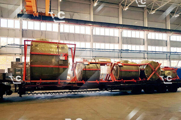 Перевозка ёмкости на трале — предмета, круглого в поперечном сечении — требует принятия особых мер для надёжного крепления негабаритного груза. В простых случаях подкладываем под цистерны бруски и используем систему строп. При более сложных перевозках негабарита применяем специальные ложементы.